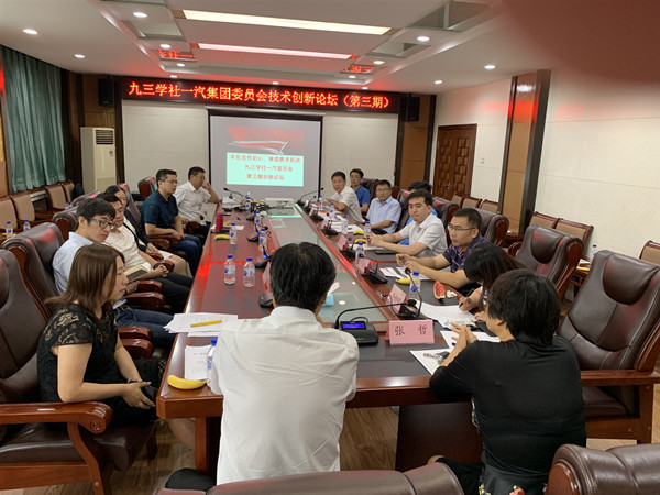 九三学社一汽集团委员会响应社市委深入开展“不忘合作初心,继续携手前进”主题教育活动的要求,弘扬爱国、民主、科学的优良传统,紧跟国家创新要求,开阔眼界、打开思路、积累知识、共享资源,结合广大社员的本岗位和自身实际情况,于2019年8月9日在社市委2楼会议厅举办了第三期“九三学社一汽委员会创新论坛”。社市委专职副主委李铭出席论坛。