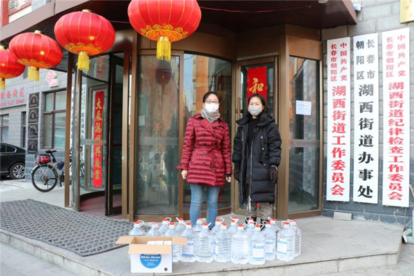 为湖西街道捐赠酒精消毒液和医用手套